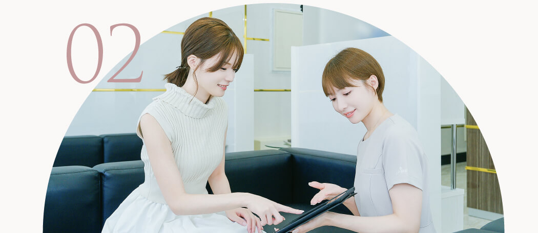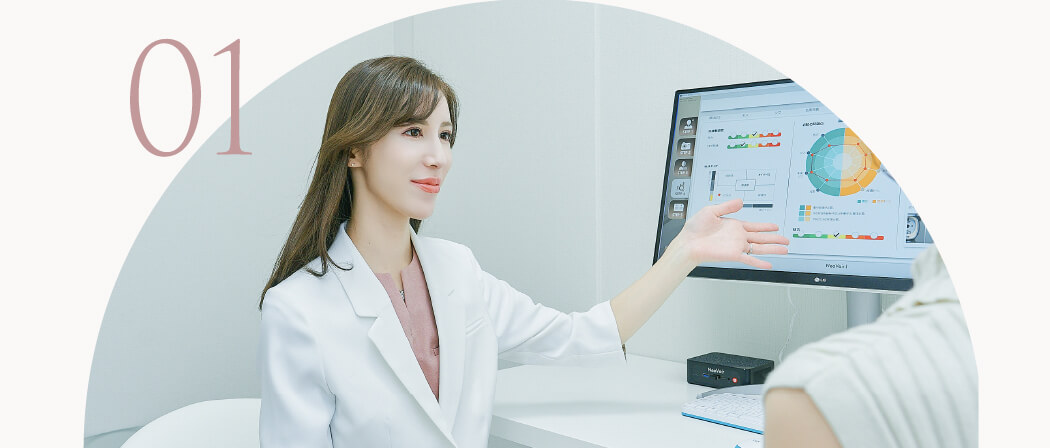 1. 共立美容外科では創業以来ドクターによるカウンセリングを大切にしております。新宿本院・皮膚科でも理念をそのままに、ドクターカウンセリングよる、現在のみでなく長期的な肌管理をプランニングいたします。