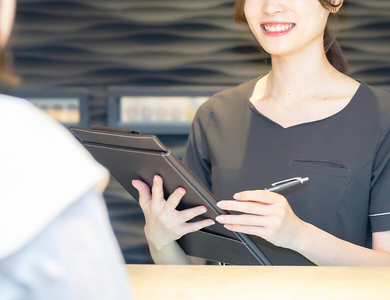 カウンセリングや診察は医師が行い、治療方針に沿った料金説明を受付が丁寧に担当します。受付がカウンセリングを行うことはありませんのでご安心ください。